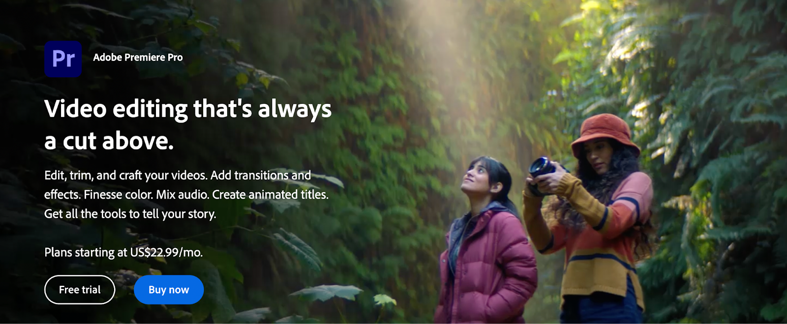 Adobe Premiere Pro ist für viele professionelle Video Creator die erste Wahl. Das Programm hält alles bereit, was es für die Videobearbeitung braucht. Mit Adobe Premiere Pro schneidest Du Deine Clips, entfernst Hintergrundgeräusche, verbessert die Audioqualität und fügst Deinen Videos Effekte und Übergänge hinzu.