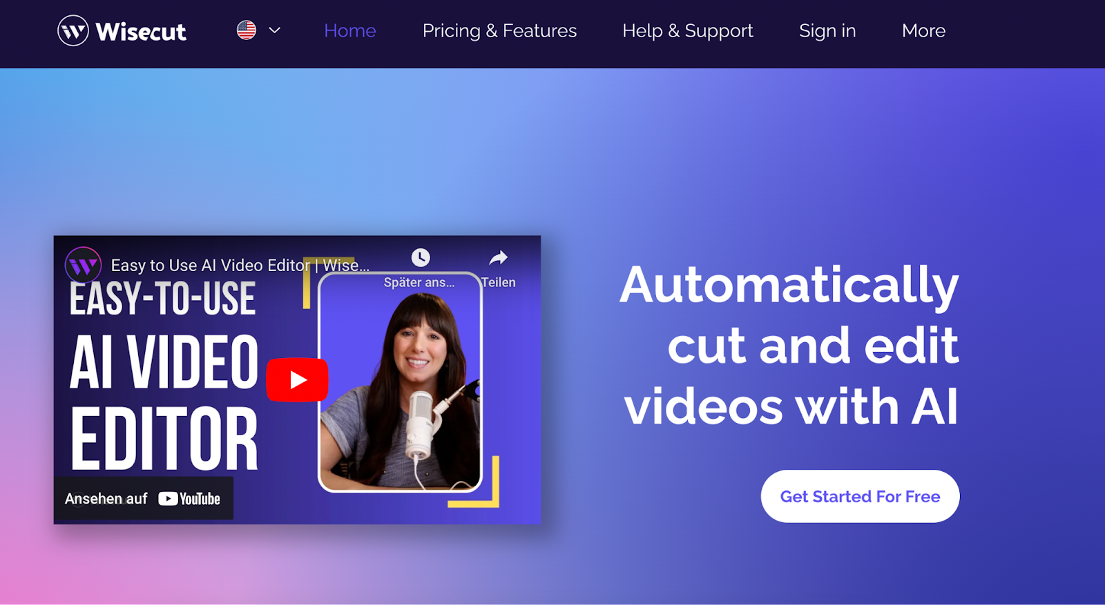 Wisecut ist ein AI-Video-Tool für Creator, die wenig Zeit haben. Denn anstatt tief in das Video-Editing einzutauchen, kannst Du diese Aufgabe dem KI-Editor überlassen. Dieser ist in der Lage, automatische Schnitte an Deinem Video vorzunehmen. So werden beispielsweise Pausen ohne Dein Zutun entfernt. Darüber hinaus kann Wisecut auch automatisch Untertitel erstellen und übersetzen und mithilfe einer KI-Gesichtserkennung, Deine Aufnahmen dynamischer gestalten.